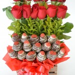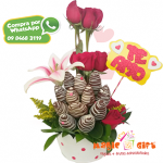 Un lindo regalo de flores y frutas achocolatadas con motivo de Amor