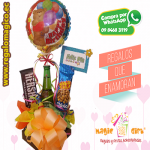 Dulce detalle con 6 chocolates americanos, 3 globos medianos de aluminio.