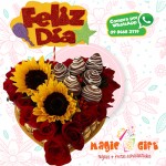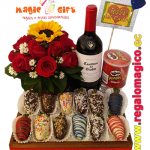Un ramo vibrante compuesto por girasoles radiantes, rosas rojas elegantes y frutillas achocolatadas que añaden un toque dulce y único. Todo dispuesto con delicadeza en una base de pizarra, sobre la cual se puede poner una frase personalizada para hacer este detalle aún más especial...LEER MÁS
