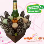 Un lindo diseño con 23 frutillas achocolatadas, 2 masmelos, 2 cervezas club con el tatuaje en las frutillas “TE AMO BEBITO-(A)”. o lo personalizamos con la frase deseada.