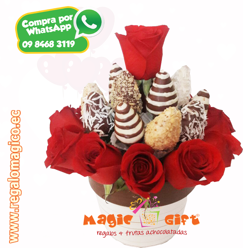 12 rosas y 12 frutillas en cerámica, modelo redondo.